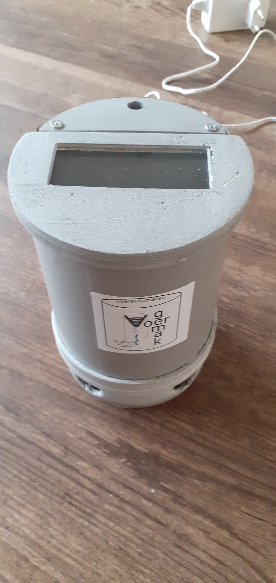 Deze 3d geprinte voerautomaat werkt zeer goed met granulaat voer.